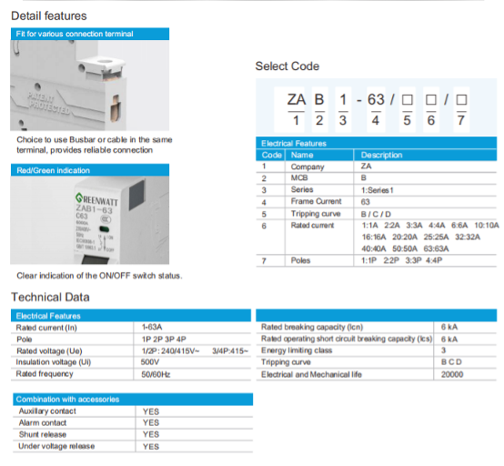 Modello: Zab1-63Brand: Greenwatttype: interruttore in miniatura (MCB) POLI: 4 (quattro poli) Currente nominale: 63atripping Curva: C Tensione curve di C Curved: 400V Accandarsi: IEC60898-1 CONDATTURA CONDIUCIO: 6000applicazioni per la protezione elettrica e industriale. Affidabilità e lungo servizio Lifeasy Din Rail InstallationCompAct Design per il risparmio spaziale nelle schede di distribuzione